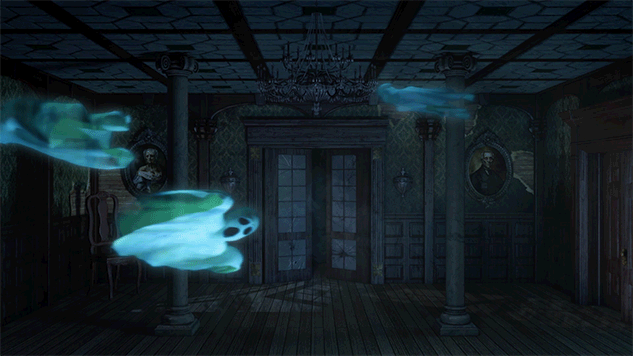 Several ghosts float gracefully in and out of frame, sometimes circling the others as if challenging the others to a scare-off. Depending on their mood, they moan, laugh, or shriek the night away. This individual decoration is part of the Boo Crew collection, five playful Halloween scenes full of songs, jokes and an occasional good-natured scare.