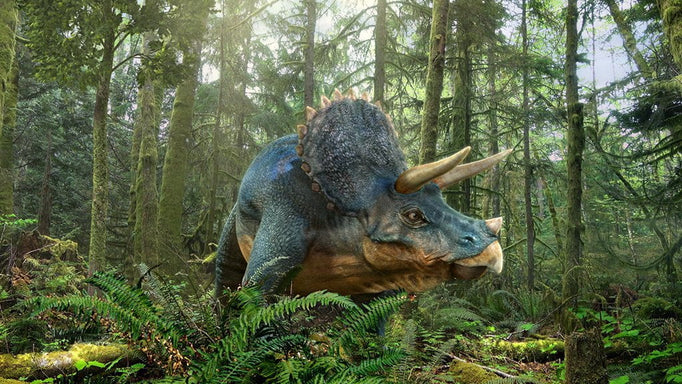 Four dinosaurs frolic and fight in a lush Jurassic-era setting – to the delight of your family!