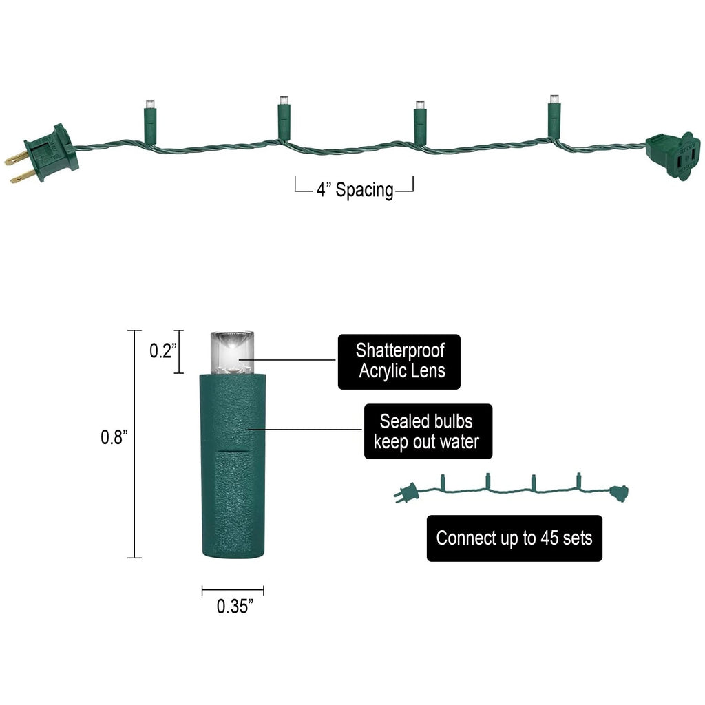 These 5mm waterproof LED string lights are smaller than your traditional mini lights, yet their concave lenses provide superior brightness and disperses light uniformly in all directions. With 100 lights per string, the bulbs are made of durable acrylic with an average life expectancy of 100,000 hours giving you years of stylish beauty. Add depth to your digital displays with lighting behind hollusions and surrounding your window projection with lights, or use them traditionally for wrapping indoor and outdoor trees, wreaths and garland