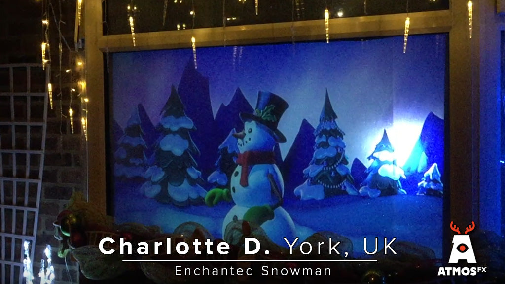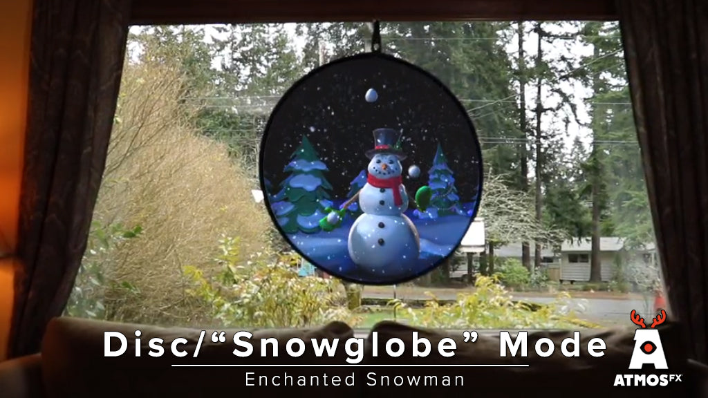 The weather may be frosty, but with it comes a jovial snowman who is sure to warm the hearts of all who encounter him. Indeed, when this magical snowman turns your decoration display into his own playful winter wonderland, you can be sure friends and neighbors will gather around to join in the fun. Project Enchanted Snowman Decoration Collection on windows and walls, or display on a TV or computer monitor. Each decoration includes a “Snow Globe” display, perfect for projecting onto an AtmosFX Decorating Disc XL or other spherical shapes.
