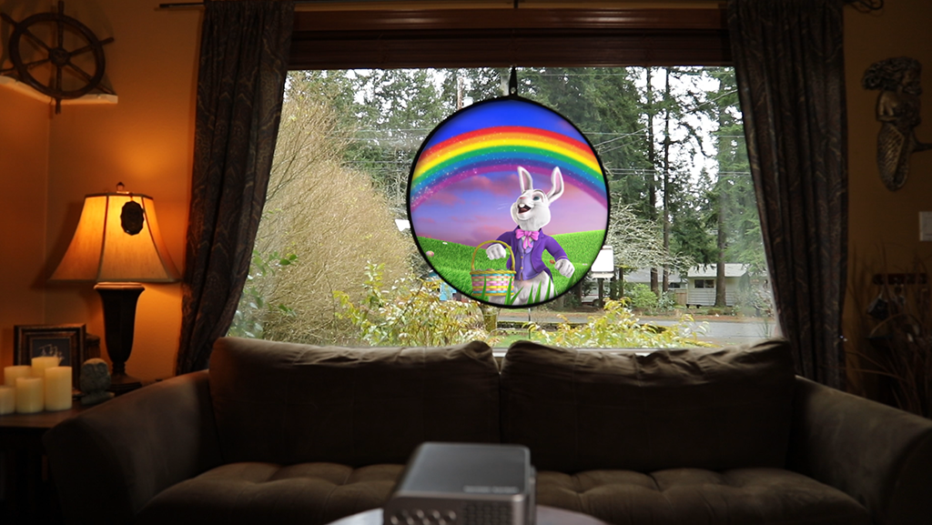 The innovative AtmosFX Decorating Disc is a circular 32-inch diameter projection screen that brilliantly captures a variety of AtmosFX's popular digital decorations for Halloween, Christmas, Easter, and more.