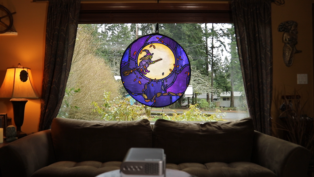 Lightweight and easy-to-use, the AtmosFX Decorating Disc is made from woven polyester and is designed to crisply hold the image from the projector. It also comes with its own storage case, folding down to just 11.5 inches in diameter when not in use.