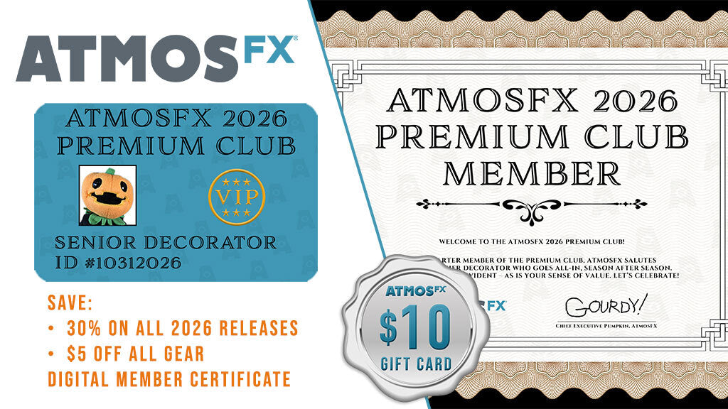 For our most dedicated decorators – introducing the AtmosFX 2026 Premium Club. Join an exclusive community of AtmosFX enthusiasts and unlock exceptional value throughout the entire year. Designed for those who live and breathe digital decorating, this select club offers substantial savings on every purchase. All this value is unleashed for just $25 – an investment that pays for itself the moment you make your first Halloween or Christmas decoration purchase. Hurry – enrollment in the AtmosFX 2026 Premium Club takes place through May 29, 2026.