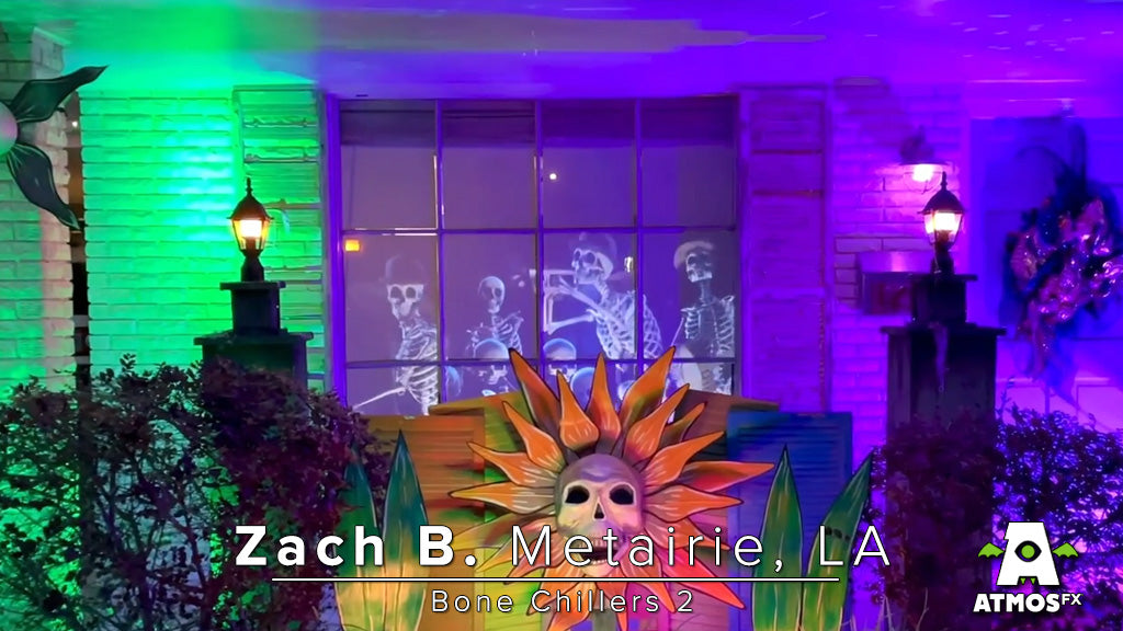 These rowdy skeletons were never meant to rest quietly underground – there is too much excitement taking place this Halloween! Loaded with dances, musical performances and slapstick routines, the energetic skeletons of Bone Chillers 2 Decoration Collection are sure to delight the entire family. And for those who prefer their skeletons to be scary, these projections are guaranteed to deliver, too. Just be careful what you wish for!