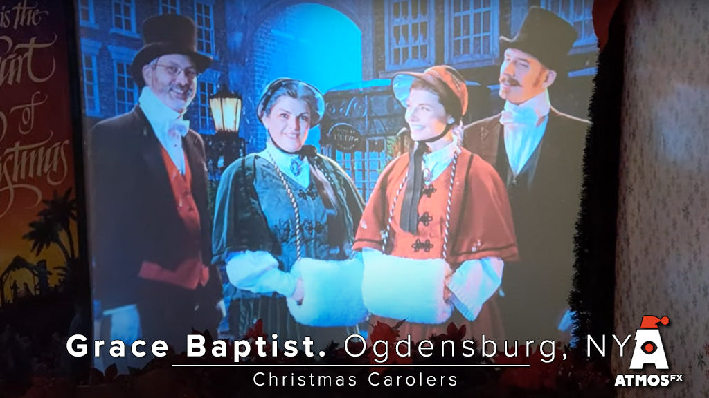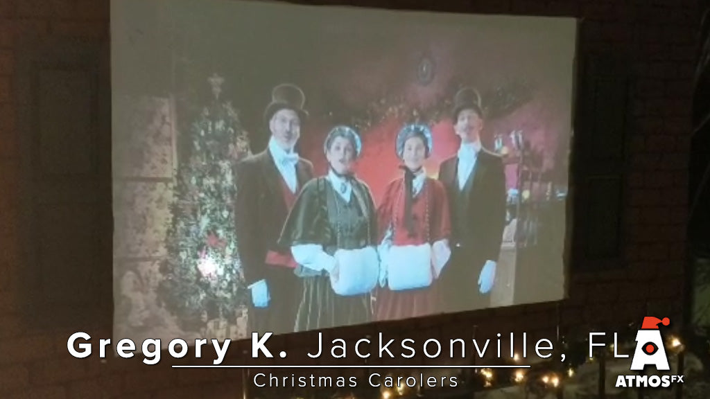 For many, the sound of approaching carolers on a crisp winter evening is the sound of the season. It is also the sound of the magically musical Christmas Carolers Decoration Collection. A quartet of Victorian-era carolers will make spirits bright with eight beloved holiday songs, including “Deck the Halls,” “Jingle Bells,” “Silent Night,” and many more. Display in your window to make it appear from outside that the quartet is performing in a lavish parlour room, or project on walls to recreate a Victorian-era town square. Display on a TV and invite the family and guests to sing along, or create a showstopping “Snow Globe” display with the AtmosFX Decorating Disc XL.