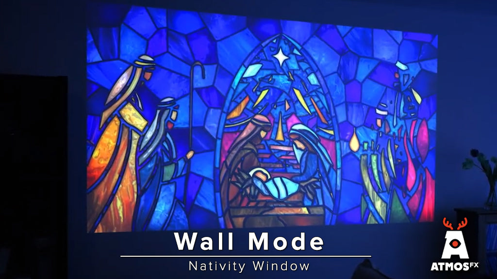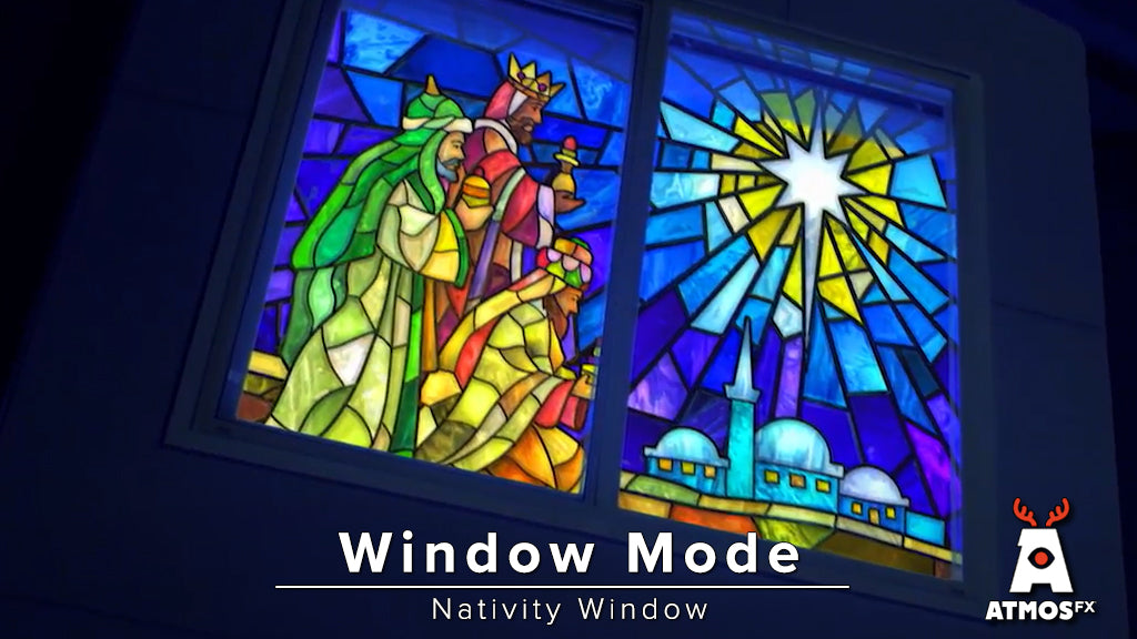 Hope shines bright during the Christmas season, and that uplifting sentiment is reflected in the Nativity Window Decoration, a radiant collection of 10 glorious stained-glass designs in one single animated scene. The entire neighborhood will gather to appreciate the story of Christmas told in dynamic light and color, optimized for projection on both vertical and horizontal windows. Or, add color to any room by displaying on a TV or tablet. You can also celebrate the spirit of the season nearly anywhere when projected on the lightweight and portable Decorating Disc XL, making it easy to display this gleaming collection of wise men, heavenly angels, and of course, The Babe in the manger.