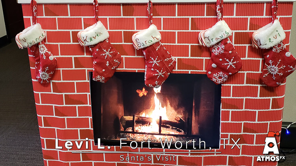 Christmas shapes appear in the smoke of this festive yuletide fireplace to spread holiday joy.